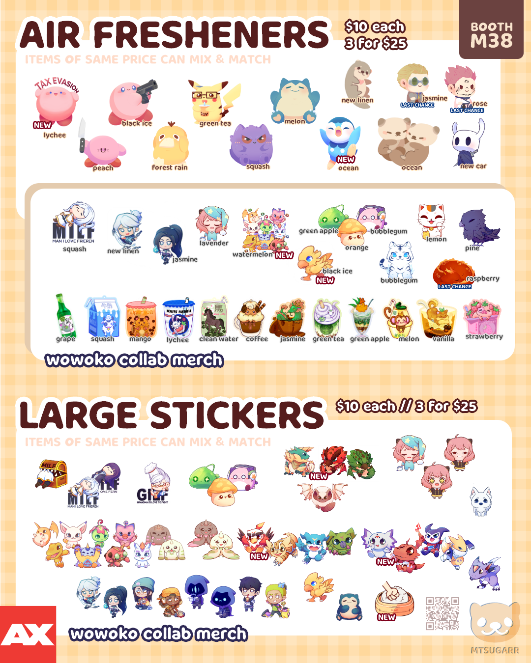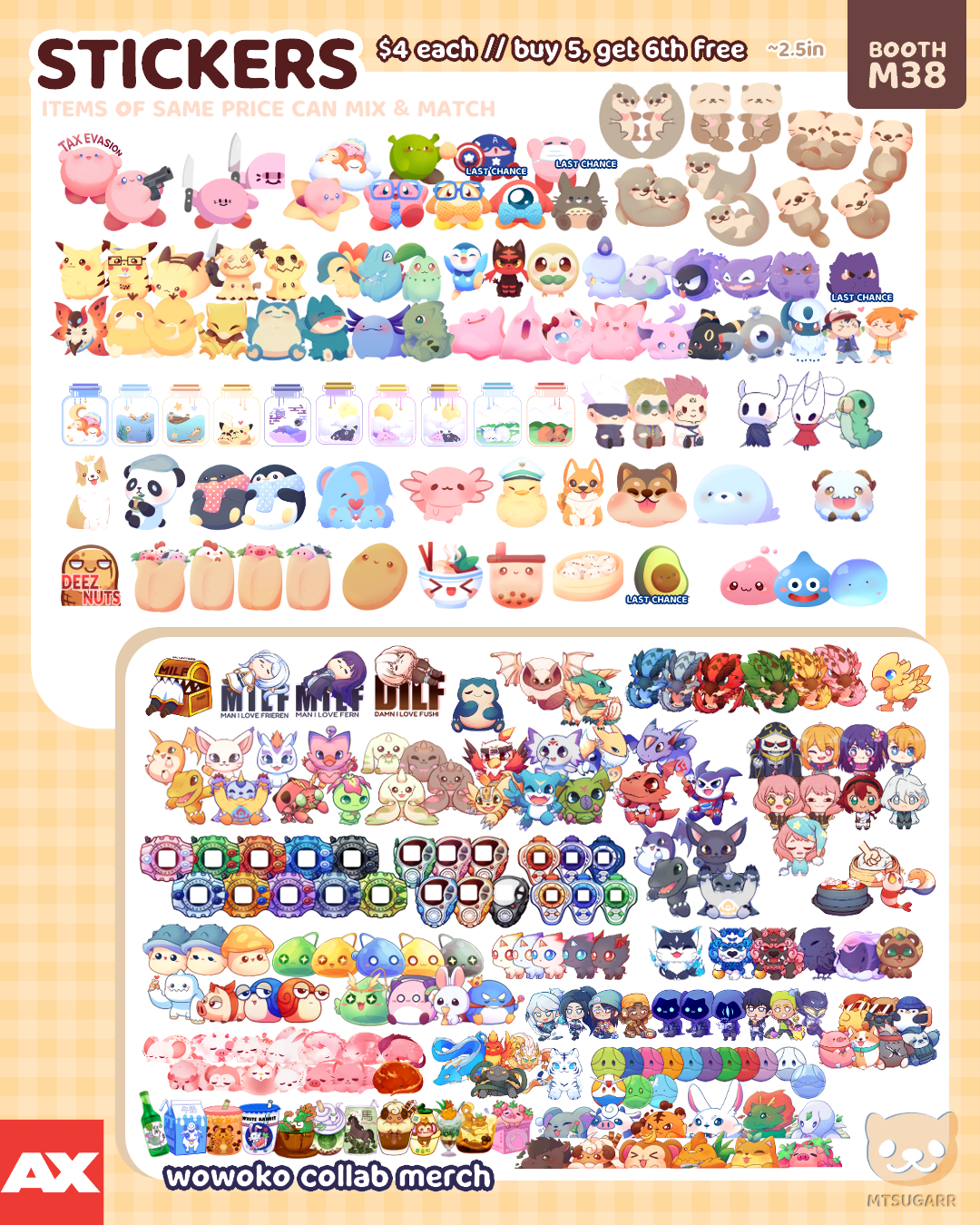 DURING EVENTS- Please consider screenshotting or taking note of specific merch you'd like before coming up to pay!- Most stickers are out on display, so please grab the ones you'd like!